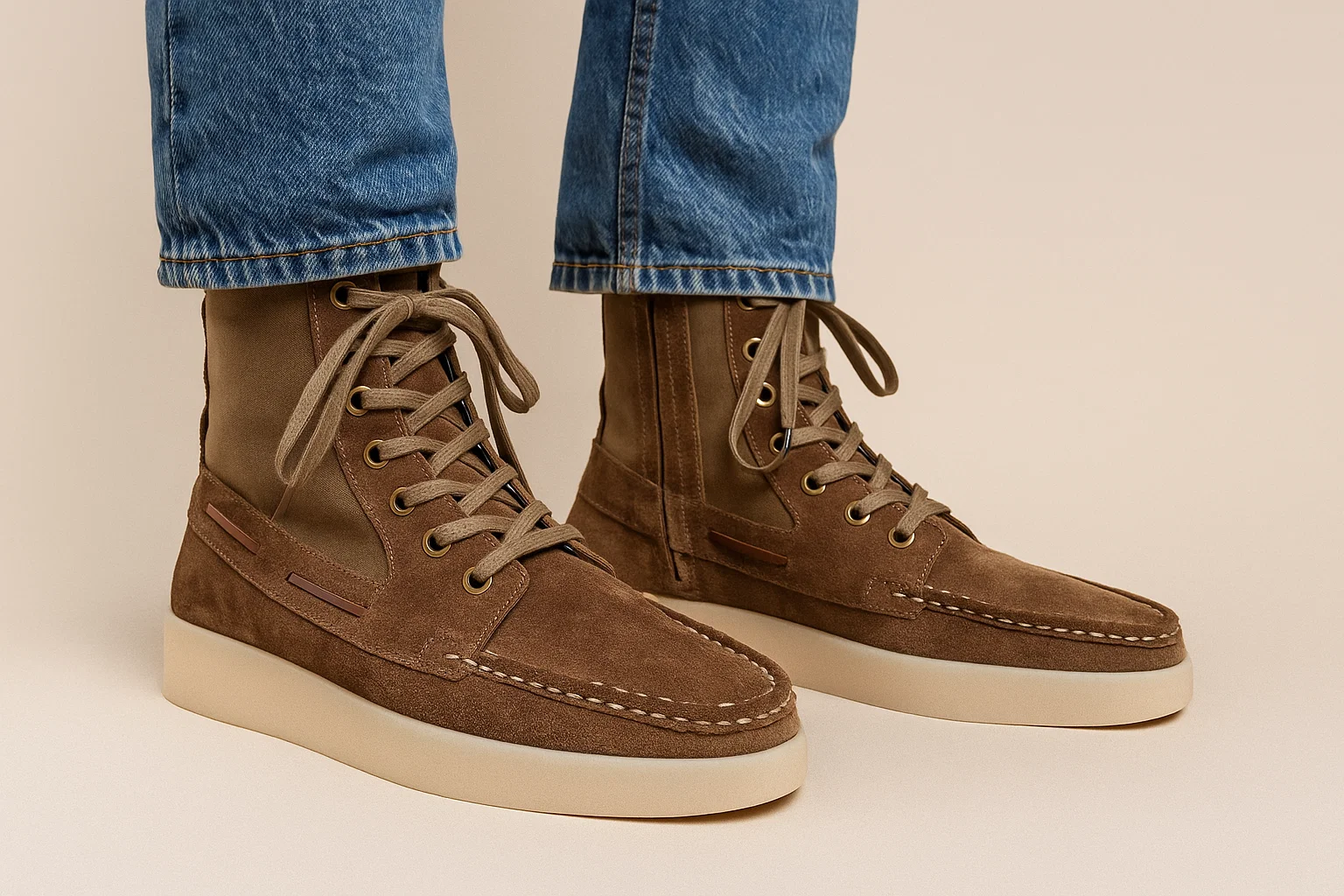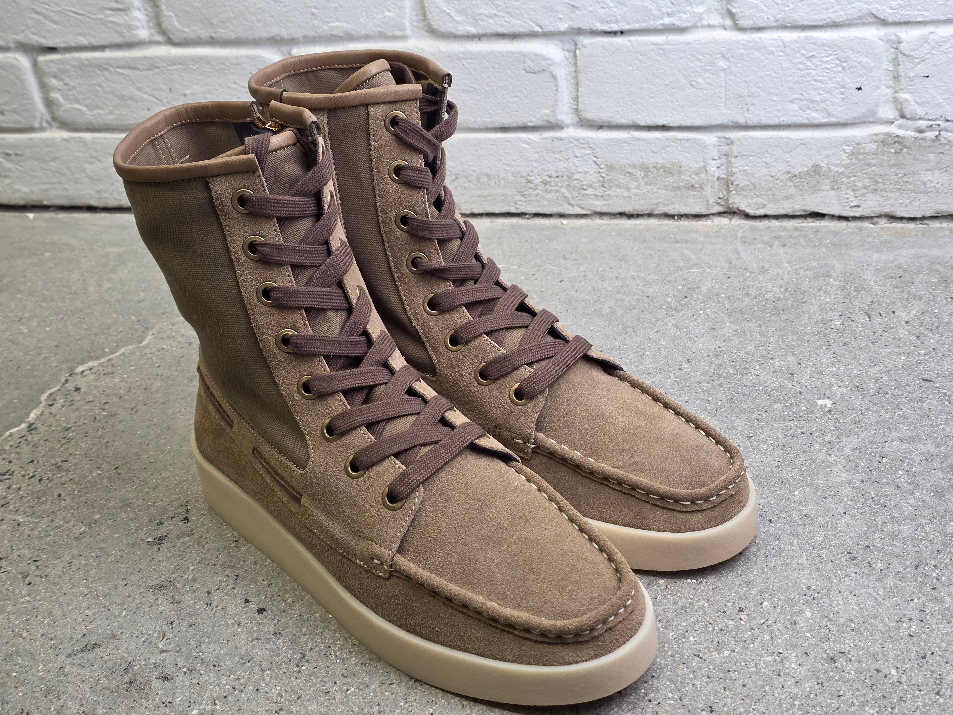 The spiritual successor to the classic boat shoe high-top, featuring premium 1.4mm thick suede cow leather with a 280gsm canvas upper. Hand-selected full-grain suede offers superior durability and breathability, while maintaining the luxurious feel expected by the modern gentleman.